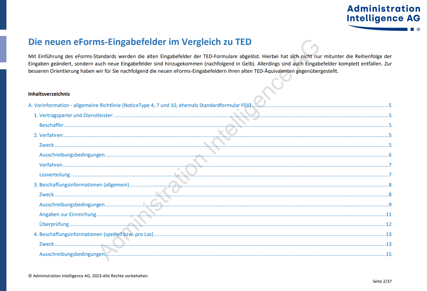Diese Aufstellung wird von uns stetig geprüft, erweitert und überarbeitet. Dennoch erfolgen alle Angaben ohne Gewähr. Die Administration Intelligence AG ist bei der Redaktion dieses Dokuments mit der größtmöglichen Sorgfalt vorgegangen. Inhaltliche Lücken, Fehler und fehlerhafte Interpretationen können dennoch nicht ausgeschlossen werden. Die Administration Intelligence AG haftet nicht für Fehler in diesem Dokument. Die Inhalte dieses Dokuments stellen keine zugesicherte Eigenschaft im Rechtssinne dar und können ohne Vorankündigung geändert werden.