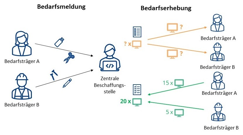 Redundante Arbeitsschritte werden dadurch vermieden und die Effizienz des Beschaffungsvorgangs gesteigert. Gleichzeitig kann die Beschaffungsstelle flexibler auf Anfragen reagieren. Bedarfsträger erhalten schneller und zu jeder Zeit transparent Informationen über den Stand ihres Bedarfs und können damit lückenlos nachverfolgen, wann ihnen das angeforderte Produkt, die gewünschte Dienstleistung oder der zu erbringende Service zur Verfügung stehen wird.