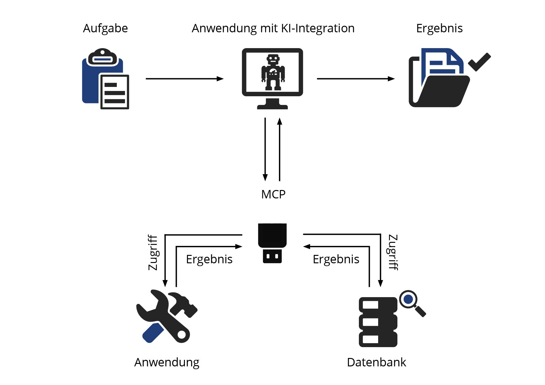 Durch standardisierte Schnittstellen wie MCP erhält Künstliche Intelligenz Zugriff auf Programme, Datenbanken und Dienste – und wird so vom Sprachmodell zum vielseitigen digitalen Assistenten. In diesem Beitrag zeigen wir, wie spezialisierte KI-Agenten in einem gesteuerten Workflow zusammenarbeiten können und warum Standardisierung der Schlüssel zur nachhaltigen Integration ist.