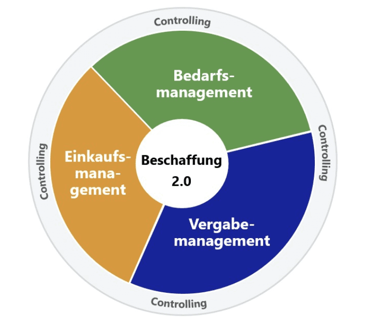 Sind die zu Beginn gemeldeten Bedarfe ausgeschöpft oder ist ein Rahmenvertrag ausgelaufen, beginnt der Beschaffungskreislauf erneut von vorne. Der Beschaffungsprozess ist somit kein linearer Vorgang mehr, sondern ein digitalisierter Kreislauf.