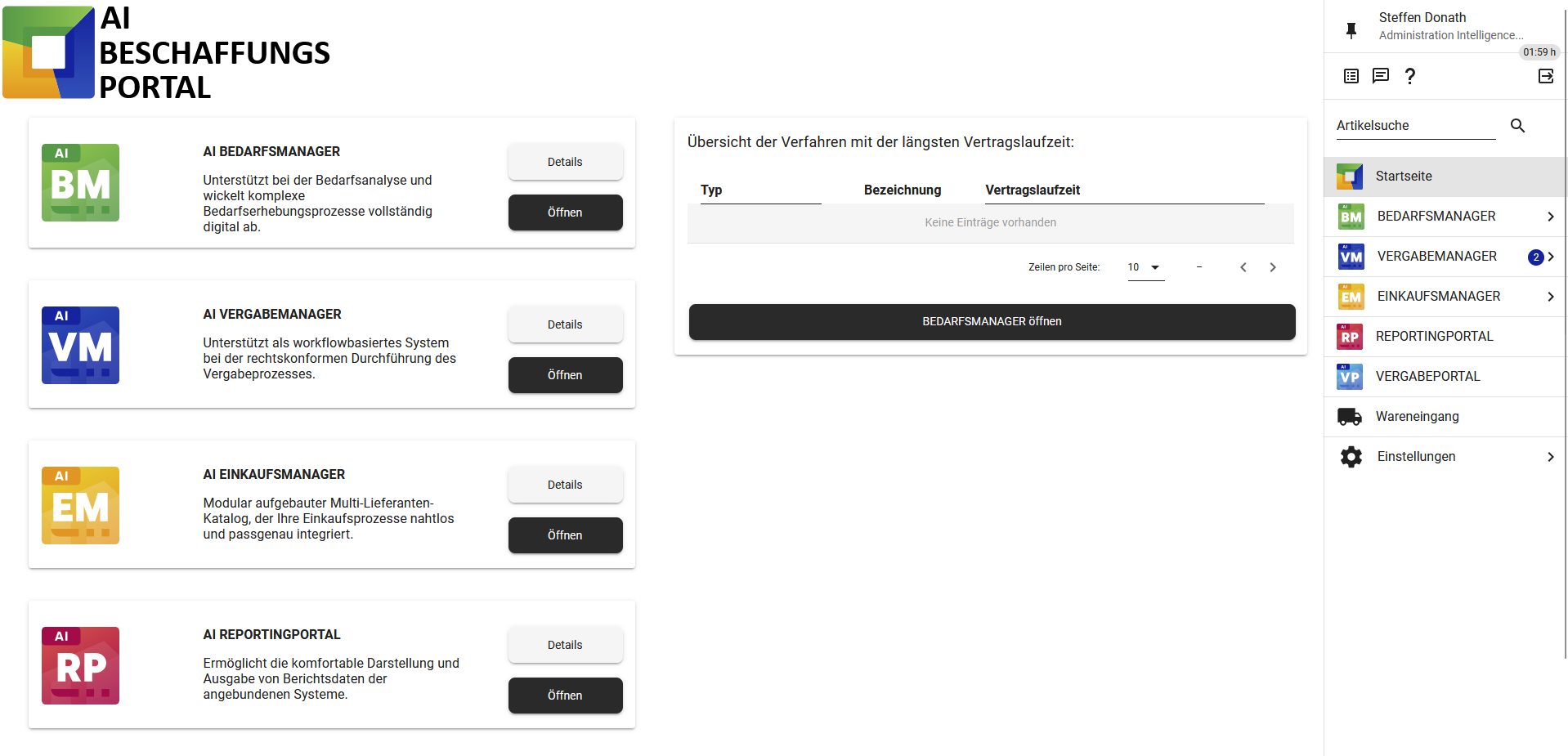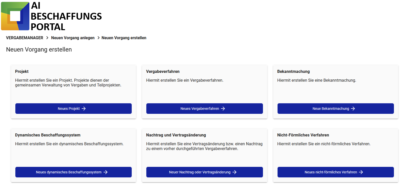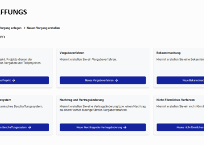 Das AI BESCHAFFUNGSPORTAL ist modular aufgebaut und wird stetig weiterentwickelt. Der AI VERGABEMANAGER ist dabei ein zentrales Modul, das Sie flexibel in Ihre bestehenden oder neuen Beschaffungsprozesse integrieren können.